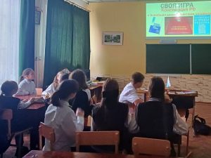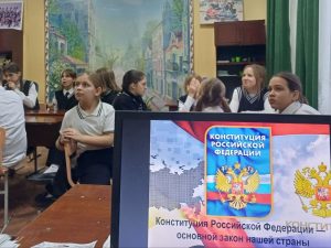 Сегодня, в День Конституции нашей страны, в 6 классе прошёл классный час в формате викторины «Своя игра», посвящённый этому государственному празднику. Ребята соревновались на знание основного закона страны, знакомились со статьями конституции, учились уважать и понимать важность соблюдения основного закона нашего большого государства.